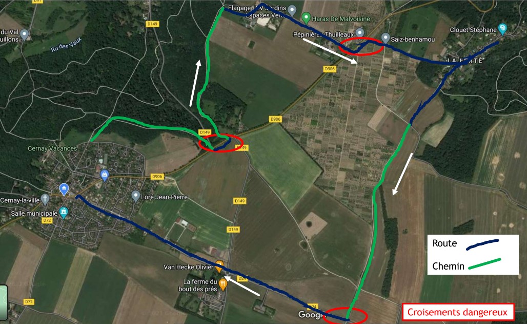 Traverser à travers champ pour éviter trop de route, retour via la piste cyclable de la Vélocénie route de Limours.